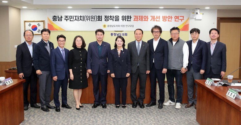 지난 4월부터 운영된 연구모임은 충남도의회 이현숙 의원(비례‧국민의힘)이 대표를 맡고, 박정수 의원(천안9·국민의힘)과 신순옥 의원(비례·국민의힘) 등 총 9명의 회원이 참여하여 주민자치의 역할과 활성화 방안을 모색해 왔다.