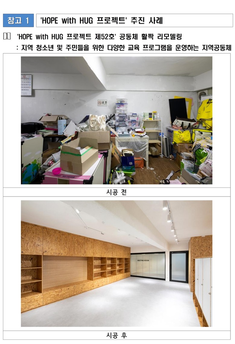 200제곱미터(㎡) 내외의 노후 공익시설 중 ▲시설 퇴소 아동의 자립을 지원하는 주거시설 ▲교육 불평등 해소를 위한 공부방·야학 ▲위기청소년을 위한 쉼터 등 사회적 약자를 위해 운영되고 있는 공간이면 신청할 수 있다.