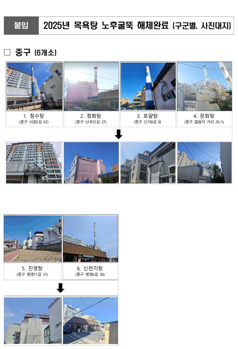 이 사업은 사용승인 후 20년 이상 경과된 노후굴뚝 해체비용의 80%(시 60%, 구군 20%)를 지원하는 사업으로 올해부터 오는 2027년까지 한시적으로 진행된다.