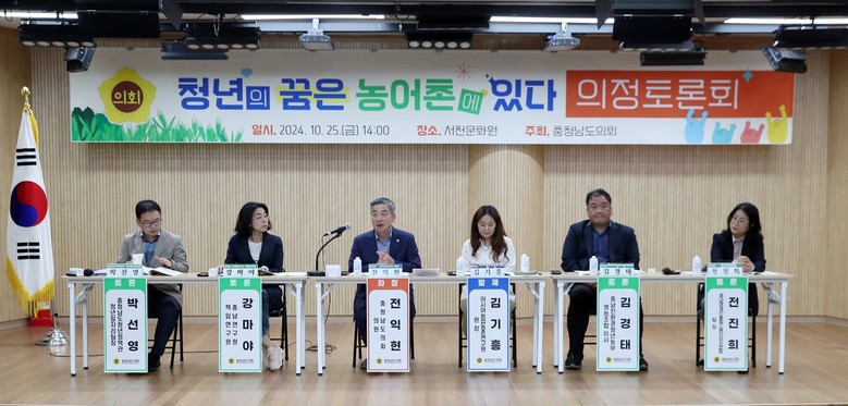 [충남 세계타임즈=백택기 기자] 충남도의회는 25일 서천문화원에서 ‘청년의 꿈은 농어촌에 있다’를 주제로 의정토론회를 개최했다.