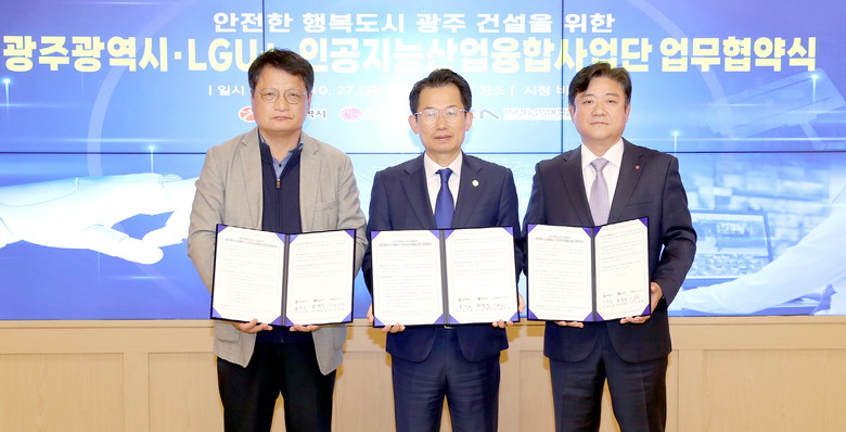이날 협약식에는 문영훈 광주시행정부시장과 최택진 엘지유플러스 부사장, 안상범 인공지능산업융합사업단 본부장이 참석했다.