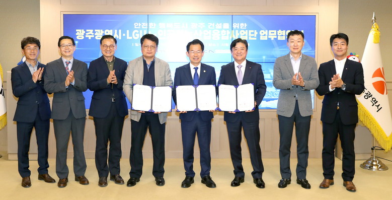 광주광역시(시장 강기정)는 27일 시청 비즈니스룸에서 인공지능을 활용한 CCTV관제센터 관제기술 고도화를 위한 회선사업자인 엘지유플러스(LGU+), 인공지능데이터센터를 운영하는 인공지능산업융합사업단과 ‘안전도시 광주건설 업무협약’을 체결했다.