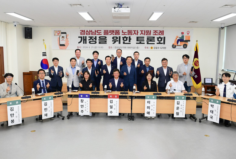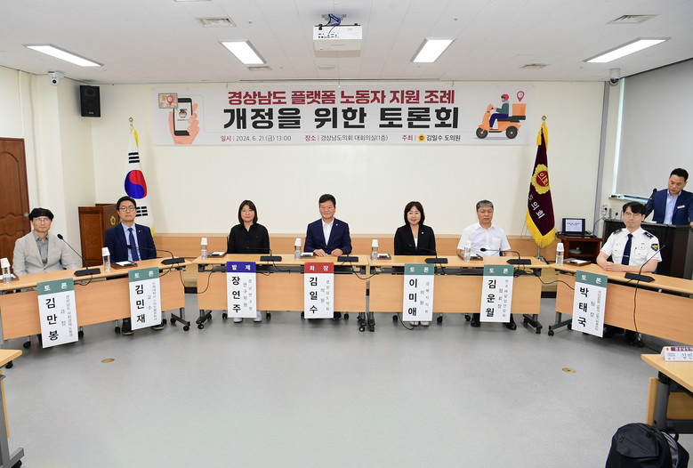 [경남 세계타임즈=최성룡 기자] 경남도의회 김일수 의원(국민의힘, 거창2)은 21일 도의회 대회의실에서 「경상남도 플랫폼 노동자 지원 조례」개정 토론회를 개최했다.
