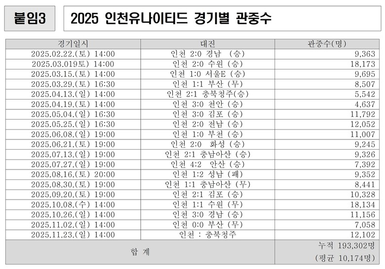 2025년 인천유나이티드의 부활에는 행정의 힘만 작용한 것이 아니다. 시민의 응원과 지역사회의 지지가 함게 만들어 낸 결실이었다.
