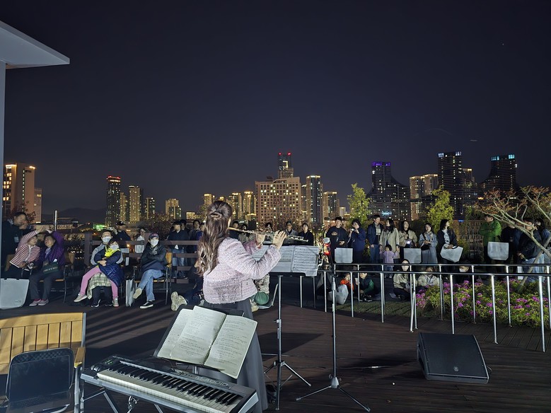 세계에서 가장 긴 옥상정원에서 세종시의 화려한 야경을 감상하는 데 그치지 않고, 버스킹·마술·플롯 공연 등이 함께 진행돼 도심과 자연, 문화가 한데 어우러진 특별한 시간을 선물했다.