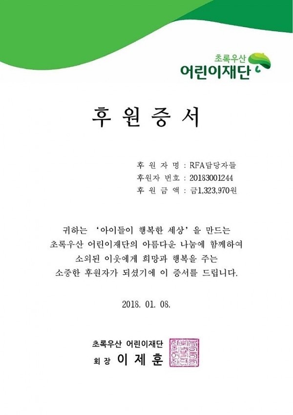 유한회사 체리츠는 현재 서비스 중인 모바일 게임 ‘수상한 메신저(Mystic Messenger)’의 수익금 전액을 초록우산어린이재단에 전액 기부했다고 24일 밝혔다.