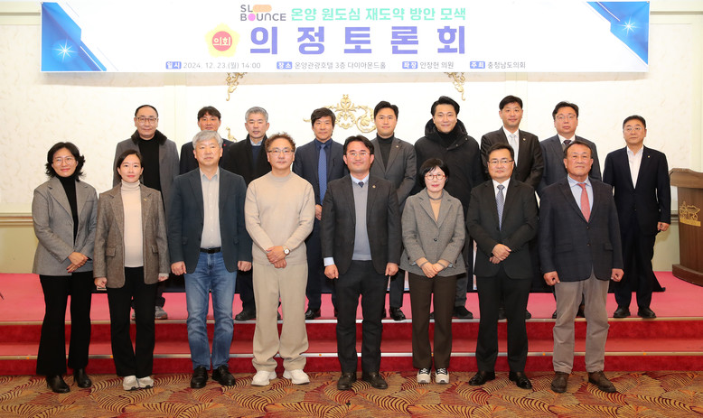 [충남 세계타임즈=이현진 기자] 충남도의회는 23일 아산시 온양관광호텔 다이아몬드홀에서 ‘온양 원도심 재도약 방안 모색’을 주제로 의정토론회를 개최했다.