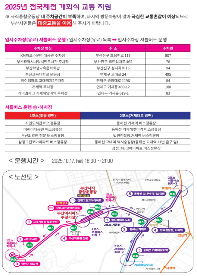 한편, 체전의 ▲공지사항 ▲경기일정 ▲대중교통 이용 등은 전국체전 공식 누리집(busan.go.kr/106_sports)을 통해 확인할 수 있다.