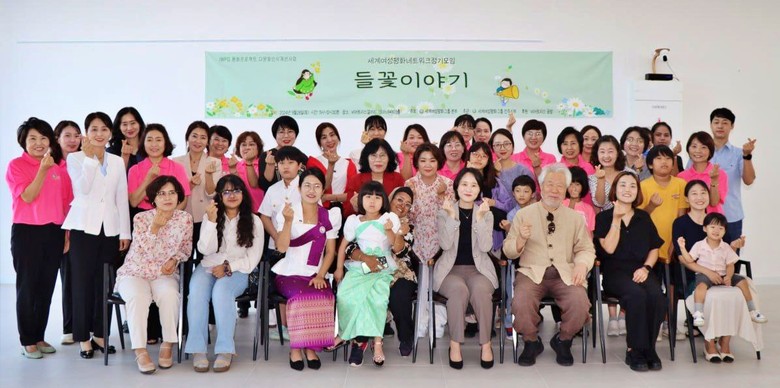 ㈔세계여성평화그룹(IWPG) 전주지부(지부장 이수정)는 지난 28일 전주 에코시티 비어트리스 갤러리에서 다문화가정의 인식개선을 위한 평화 프로젝트 ‘들꽃이야기’를 진행하고 단체사진을 찍었다.