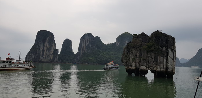 하롱베이 절경 중에서도 최고 절경으로 꼽히는 일출과 일몰을 감상할 수 있기 때문이다. 선착장을 떠나 유람선을 타고 1시간 정도 가다 보면 호수처럼 잔잔한 바다 위에 펼쳐진 기암괴석 가까이에 다다른다. 기암괴석은 어느 위치에서 보느냐에 따라 다양한데 바람과 파도로 인해 생긴 작은 동굴이 셀 수 없이 많다. 동굴 가운데 가장 웅장한 곳은 항한으로 길이가 2㎞에 이른다. 항티엔꿍은 하롱베이에서 가장 아름다운 동굴 중 하나로 꼽힌다. 배에서 내려 50m정도 걸어올라 가면 항티엔꿍의 커다란 종유석을 감상할 수 있다. 하롱베이도 비록 짧은 여행기간이었지만, 필자가 본 느낌은 외국 관광객들이 다시 한 번 더 찾아올 수 있도록 많은 노력을 기울이는 것 같았다. 관광객들을 위한 시설뿐 아니라 음식도 한국인들이 싫어하는 베트남 향신료인 고수 등은 원하지 않으면 넣지 않고 만든다. 한국인들의 입맛에 맞게 조리하는 등 많은 변화를 보이며, 관광객들의 마음을 사로잡고 있는 곳이 최근의 베트남 모습이다.