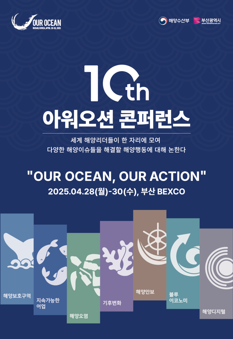 부산시(시장 박형준)는 오는 4월 28일부터 30일까지 3일간 벡스코(BEXCO)에서 「제10차 아워 오션 콘퍼런스(Our Ocean Conference, OOC)」가 개최된다고 밝혔다.