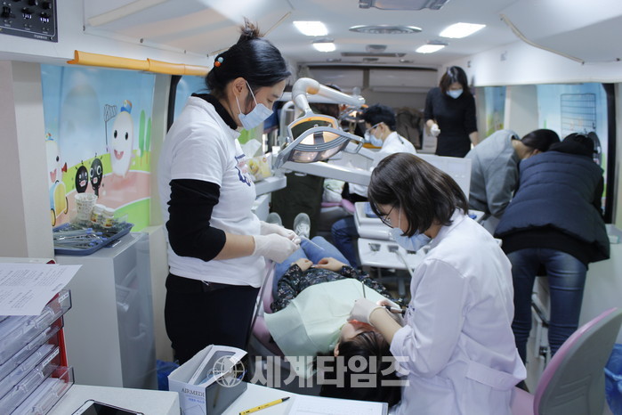 서울시와 현대차 정몽구 재단이 운영하는 서울온드림교육센터(센터장 김수영)는 (주)제니튼(해피스마일치과버스)과 함께 10월 15일, 11월 5일 두 차례에 걸쳐 중도입국청소년 56명에게 치과 검진과 치료를 제공했다. 두 기관은 중도입국청소년들의 건강한 한국사회 정착을 지원하기 위해 지난 9월 업무협약을 맺었고, 이를 실행에 옮긴 것이다.