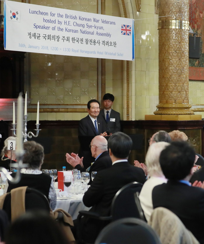 정 의장은 이어 “여러분들의 희생과 은혜를 잊지 않고 한-영 우호 증진을 위해 최선을 다하며 국제사회에 더욱 기여하는 책임 있는 국가가 되도록 노력하겠다”고 말했다.