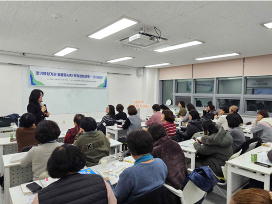 남양주종합재가센터 전해진 센터장은 “이번 「민간 장기요양기관 역량강화교육」 사업은 소규모 장기요양기관의 많은 관심을 받았다”라며, “앞으로도 민간 장기요양기관과의 적극적인 소통을 통해 돌봄종사자를 대상으로 다양한 교육을 준비하고 경기 북부권역으로 확대해 나갈 계획이다”라고 밝혔다.