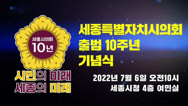 세종시의회 상병헌 의장은 “세종시의회 출범 10주년 기념식이 세종시민과 함께하는 화합과 축제의 장이 될 수 있도록 뜻깊은 프로그램을 다채롭게 준비했다”며 많은 관심과 성원을 당부했다.