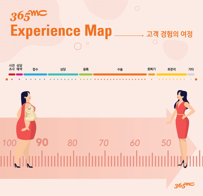 그 결과 지방흡입수술을 위해 365mc를 찾은 고객들의 ‘고객 경험의 여정’은 총 47개의 접점을 가진 것으로 파악되었다.