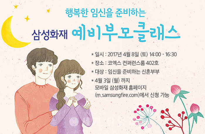 「예비부모 클래스」는 삼성화재 모바일 홈페이지 이벤트 화면에서 4월 3일까지 신청이 가능하다. 더 자세한 내용은 삼성화재 보험설계사를 통해 문의하면 된다.