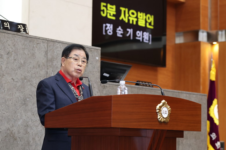 | ▲ 의회 독단운영을 비판하는 5분 자유발언에 나선 국민의힘 정순기 의원 |