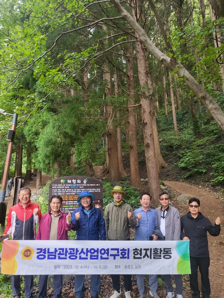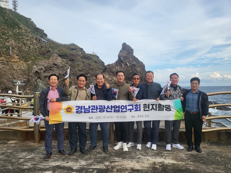 [경남 세계타임즈=최성룡 기자] 경상남도의회 의원 연구단체인 ‘경남관광산업연구회’(회장 조영명 의원, 이하 “연구회”)는 10월 4일부터 6일까지의 일정으로 울릉도 일원을 방문, 해양관광거점 조성 및 관광 콘텐츠 방안 모색을 위해 현지 활동을 펼쳤다.