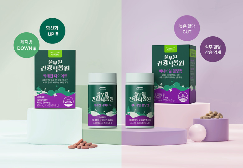 이번에 출시된 제품 2종은 식사 후 혈당 상승 억제에 도움을 줄 수 있는 ‘바나바잎 혈당컷’, 항산화 및 체지방 감소에 도움을 줄 수 있는 ‘카테킨 다이어트’이다.