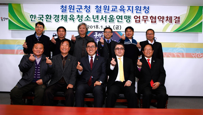 이날 철원군청 2층 상황실에서 열린 이번 업무협약식에는 이현종 철원군수, 유범진 한국환경체육청소년연맹 이사장, 송재형 한국환경체육청소년서울연맹장(서울시의원), 정희섭 철원군농촌체험관광발전협의회장, 김성진 강원도철원교육지원청 장학사, 정광인 한국환경체육청소년서울연맹이사(북악중학교 교장) 등 관계기관 임직원들이 함께 했다.