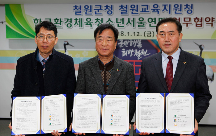 한국환경체육청소년서울연맹(연맹장 송재형, 이하 연맹)은 12일 철원군청, 강원도철원교육지원청과 청소년 농촌체험학습 및 환경교육을 위한 업무협약(MOU)를 체결했다고 밝혔다.