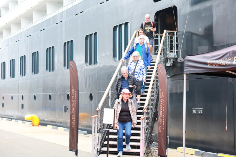 특히 오전에는 속초항 관계기관 주요 인사 30여 명이 참여한 크루즈 선내 견학과 환영 행사도 함께 진행되었다. 관계기관 내빈들은 선내 주요 시설을 견학하며 크루즈 산업의 현장을 직접 확인하고, 관광자원 홍보 및 협력 방안을 논의하는 뜻깊은 시간을 가졌다.