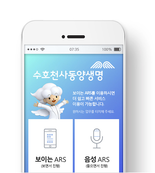 ‘보이는 ARS 서비스’를 이용하고자 하는 동양생명 고객은 본인 명의 스마트폰으로 엔젤컨택센터(ARS상담센터)에 전화를 건 후 안내멘트에 따라 이용하면 된다. 안드로이드폰은 ‘보이는 ARS’를 지원하는 애플리케이션이 설치되어 있으면 안내음성과 함께 터치식 이미지 메뉴가 자동으로 제공된다. 아이폰 또는 애플리케이션 미설치의 경우 통화 연결시 문자메시지로 전송되는 링크를 클릭해 사용하면 된다.