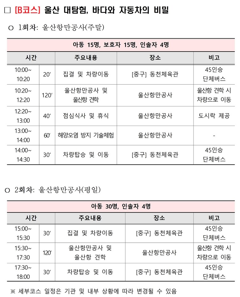 이번 사업은 교육발전특구 사업의 일환으로 울산형 책임돌봄 정책 추진에 따른 지역 산업 특성을 반영한 기업연계형 체험 교육이다. 초등 돌봄시설 아동들에게 보다 질 높은 서비스와 다양한 진로탐색의 기회를 제공하기 위해 마련됐다.