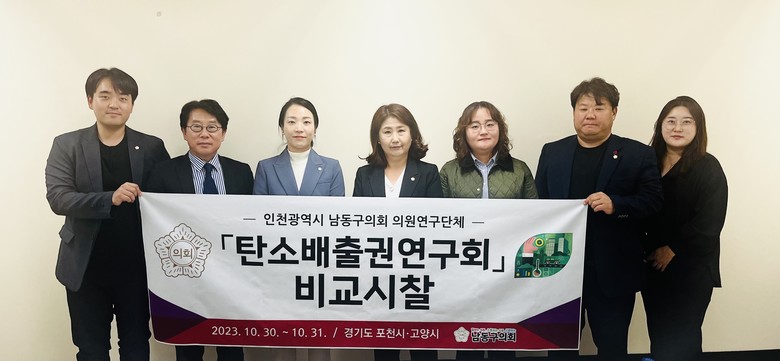 [남동구 세계타임즈=심하린 기자] 남동구의회 의원연구단체 『탄소배출권 연구회』(회장 육은아 의원) 소속 의원들이 탄소중립 활성화 우수사례를 벤치마킹하고자 지난 30일부터 31일까지 경기도 포천시와 고양시를 방문했다.