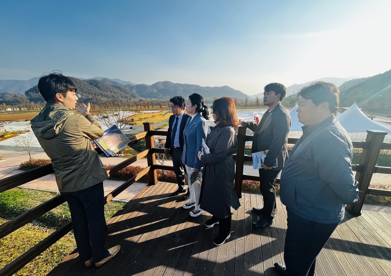 이어 한탄강 생태경관단지를 방문하여 관계자로부터 홍수터의 홍수조절지에 탄소 상쇄숲을 조성하여 온실가스를 감축한 사례를 듣고 현장을 둘러보았다.