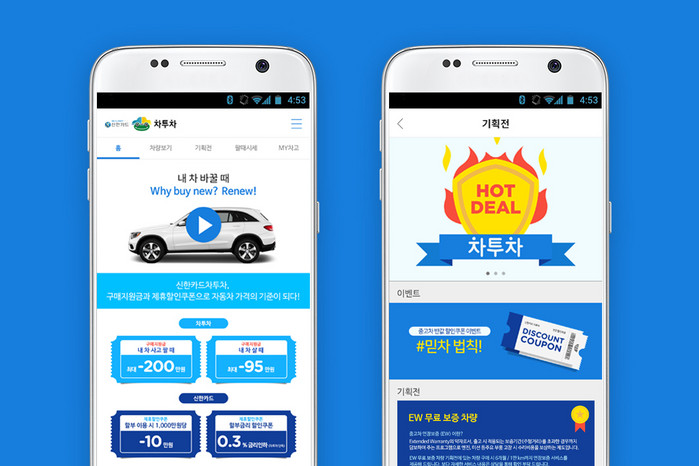 ‘신한카드 차투차’는 직영서비스로 운영되는 중고차 온·오프라인 연계(O2O) 서비스로, 온라인 사이트에서 정확한 정보 제공과 각 차량에 따라 최적화된 할인가를 적용해 고객 혜택을 강화한다.