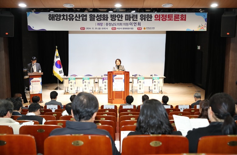[충남 세계타임즈=이현진 기자] 충남도의회는 20일 서산시 문화회관에서 ‘해양치유산업 활성화 방안 마련 의정토론회’를 개최하고, 지역 자연환경과 해양자원을 활용한 해양치유산업 방향 모색과 활성화 방향을 점검했다.