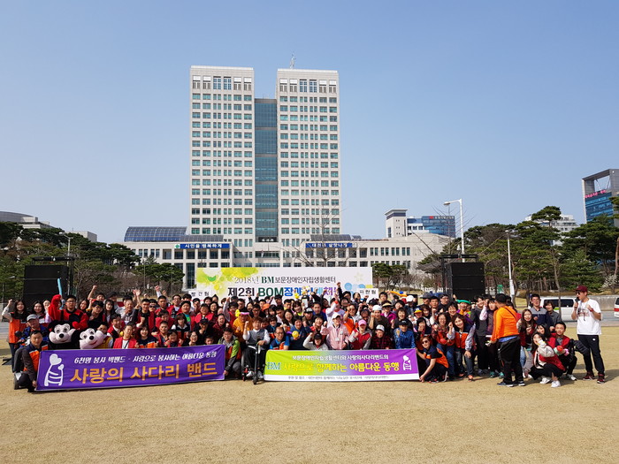 [대전=세계타임즈 이장성 기자] 대전광역시 봉사 단체 사랑의 사다리 밴드(리더 이정제)는 3월 30일 오전10시, 시청 앞 보라매공원에서 열린 제2회 보문장애인자립생활센터(센터장 신인수) 체육대회에서 행사안내, 점심급식 및 게임보조 봉사를 통해서 우리 사회의 따뜻한 정을 나누었다.
