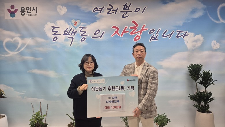 동백2동은 12일 ㈜시연디자인건축(대표 오정환)이 저소득계층 지원을 위한 이웃돕기 성금 100만 원을 기탁했다고 밝혔다.