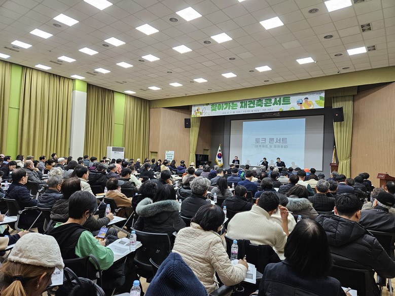 [서초구 세계타임즈=이장성 기자] 서울 서초구(구청장 전성수)는 오는 30일 오전 10시 서초구청 2층 대강당에서 지역 내 재건축 조합과 구민을 대상으로 ‘2025년 제4회 찾아가는 재건축 정책 콘서트'를 개최한다고 밝혔다. 구는 재건축에 관심 있는 주민과 재건축조합 임원, 토지 소유자 등을 대상으로 정비사업에 대한 이해를 돕고 추진 주체의 전문성을 강화하기 위해 2023년부터 ’찾아가는 재건축 정책 콘서트‘를 지속적으로 추진하고 있다.