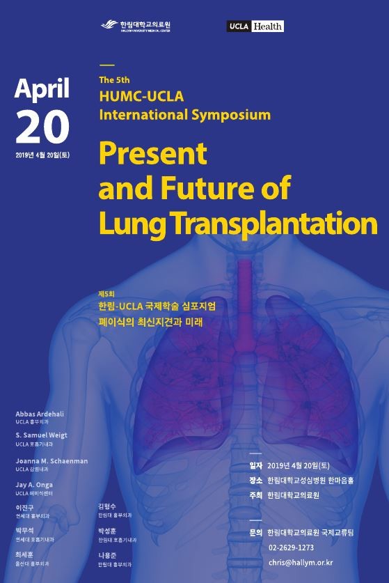 한림대학교의료원은 “폐이식이란 회복이 어려운 환자들에게 새로운 꿈을 선사할 수 있는 최신 의료기술”이라며 “세계적 선진기관과 함께하는 이번 심포지엄을 통해 폐이식 분야의 미래를 볼 수 있을 것”이라고 말했다.