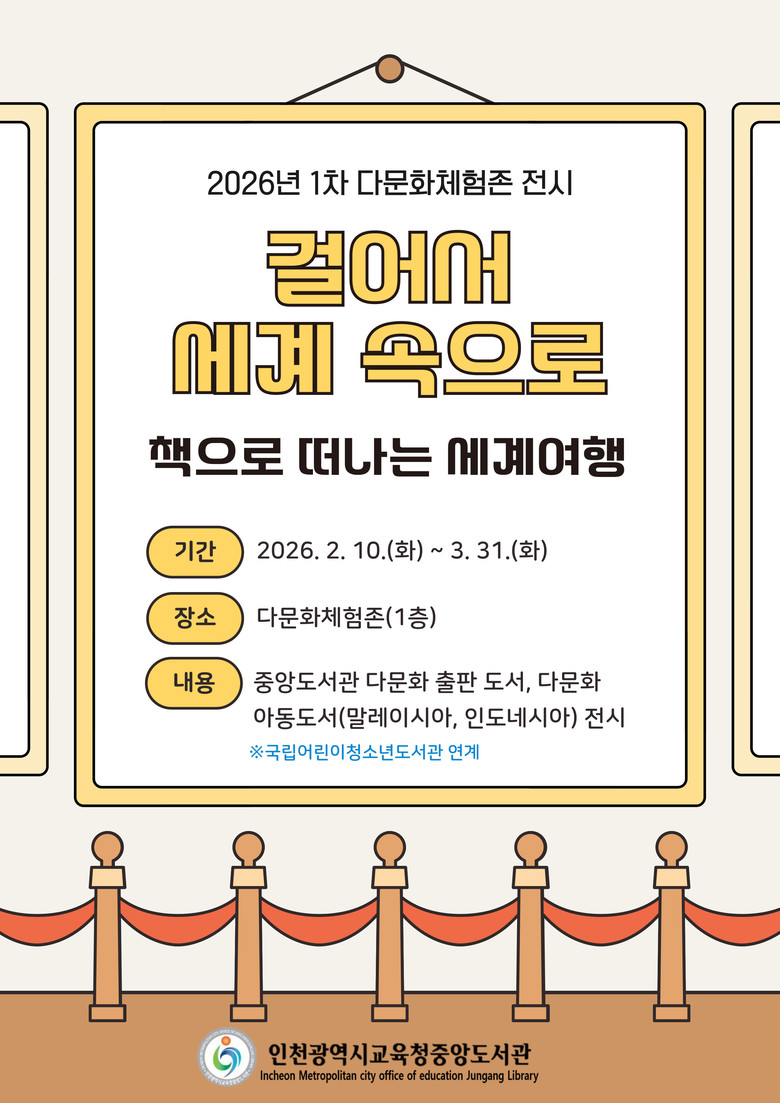 이번 전시는 중앙도서관의 다문화체험존 기획 전시인 ‘걸어서 세계 속으로’의 첫 번째 순서로, 책을 통해 세계 각국의 문화와 삶을 자연스럽게 소개하고자 기획했다.