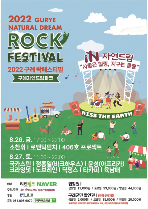[세계타임즈 = 양준호 기자]'2022 구례자연드림 락페스티벌'이 오는 26일~27일 구례자연드림파크에서 3년 만에 다시 열린다.