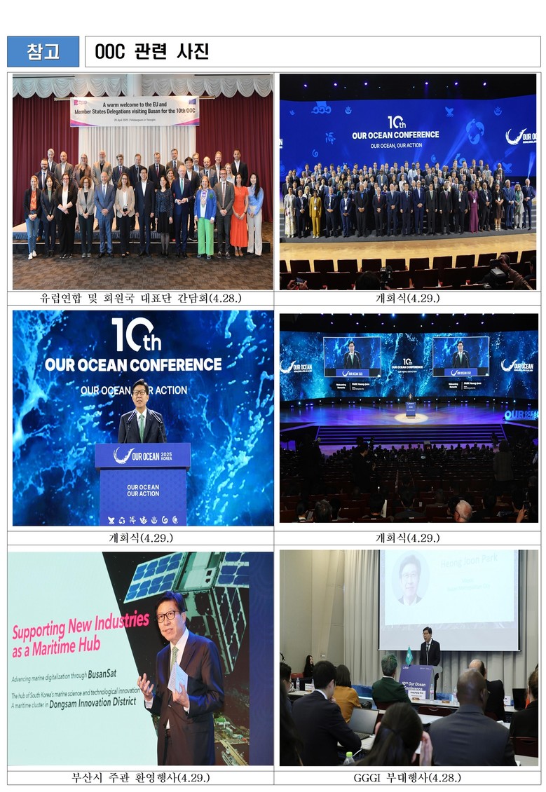 한편, 시는 「제10차 아워 오션 콘퍼런스(OOC)」를 계기로, 다양한 국제협력 성과도 끌어냈다. 특히, 해양환경 분야 국제협력의 새로운 이정표를 세우며, 부산이 해양환경 보호 실천을 넘어 글로벌 해양 민관협력(거버넌스) 강화에 실질적으로 이바지하는 도시임을 입증했다.