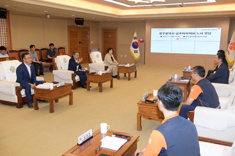 이날 면담은 지난 7월30일 발표된 금호타이어 노사 합의안에 따른 후속 대응 차원에서 마련됐으며 금호타이어 정일택 대표이사, 김명선 부사장, 황용필 제1노조 대표, 강정호 제1노조 곡성지회장 등이 참석했다.
