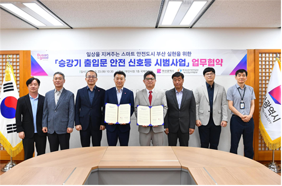 ◈ 9.23. 시-한국승강기안전공단 부산경남지역본부 업무협약 체결… ▲[시] 시범사업 예산 및 행정 지원 ▲[공단] 실증사업 실시, 시범사업 성과보고, 안전검사 지원 [부산 세계타임즈=이용우 기자] 부산시(시장 박형준)는 올해부터 「승강기 출입문 안전 신호등 시범사업」을 추진한다고 밝혔다.