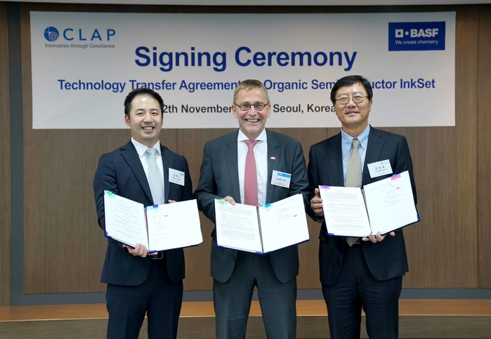 디스플레이 부품 및 센서 전문기업 클랩(CLAP, 대표이사 김성호)이 글로벌 화학기업 바스프(BASF)와 유기반도체 잉크셋(Organic Semiconductor InkSet) 기술 이전 협약을 체결했다고 13일 밝혔다.