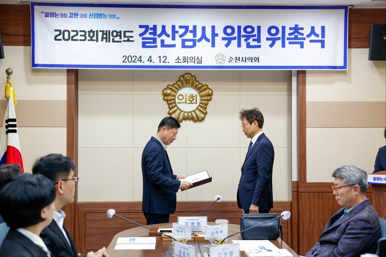 [순천시 세계타임즈=우덕현 기자] 순천시의회(의장 정병회)는 12일 2023회계연도 결산검사위원 10명에게 위촉장을 수여했다.