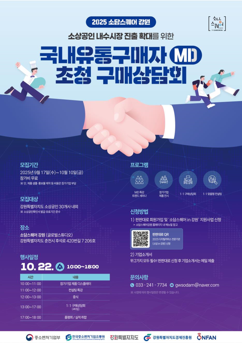 정호철 강원특별자치도 경제정책과장은 “이번 상담회를 통해 도내 소상공인들이 단순한 제품 판매를 넘어 실전형 온라인 마케팅 역량을 강화하고, 안정적인 판로 확대와 브랜드 경쟁력 강화에 기여할 것으로 기대된다”고 밝혔다.