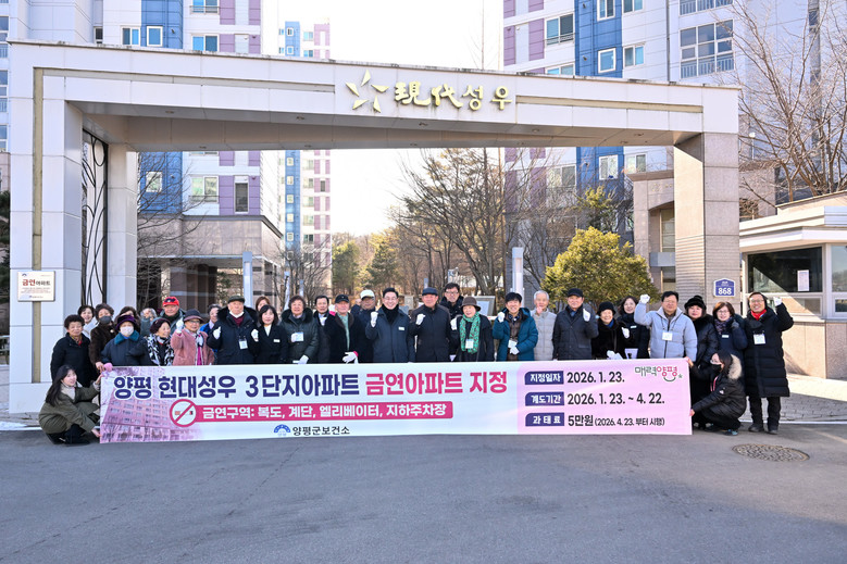 이번에 금연아파트로 지정된 현대성우 3단지 아파트는 복도, 계단, 엘리베이터, 지하주차장 전 구역이 금연구역으로 지정됐다. 양평군은 금연아파트 현판과 안내 현수막을 설치하고 3개월간 주민 홍보 및 계도 기간을 운영할 계획이며, 이후 2026년 4월 23일부터 금연구역 내 흡연 적발 시 5만 원의 과태료를 부과된다.