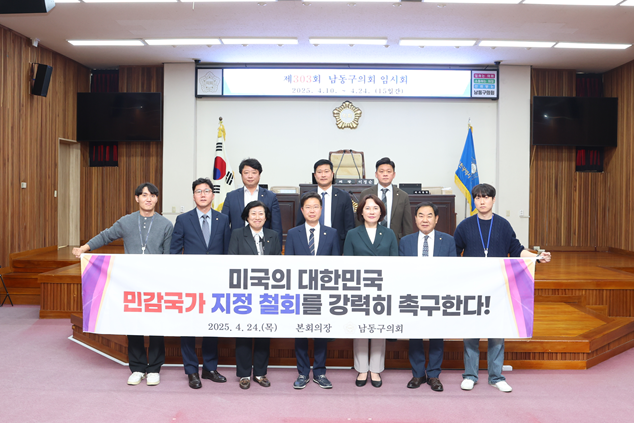 [남동구 세계타임즈=심하린 기자] 인천 남동구의회는 미국이 대한민국을 ‘민감국가’로 지정한 것에 대해 24일 “정부는 지정 철회를 위해 즉각적인 외교적 대응에 나서라”고 촉구했다.