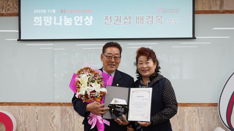 이번 희망나눔인상으로 선정된 두 수상자는 27년째 지역 내 취약계층을 돕고 있는 ‘천사 부부’이다. 전권섭씨는 매년 쌀 100포대를 기부해 어려운 이웃을 돕고 있으며, 아내 배경옥씨는 장애인, 어르신을 대상으로 나눔 활동을 실천하고 있다.