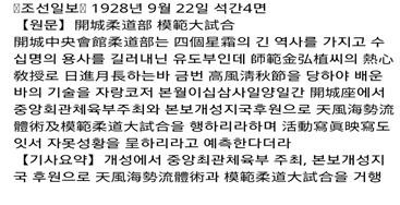 | ▲1928년 고류유술의 천풍해세류 관련된 신문기사 |