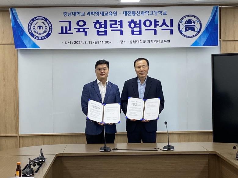 [대전 세계타임즈=이채봉 기자] 대전동신과학고등학교(교장 유상완)는 8월 19일(월), 충남대학교 과학영재교육원과 과학 인재 양성을 위한 교육협력 협약을 체결했다고 밝혔다.